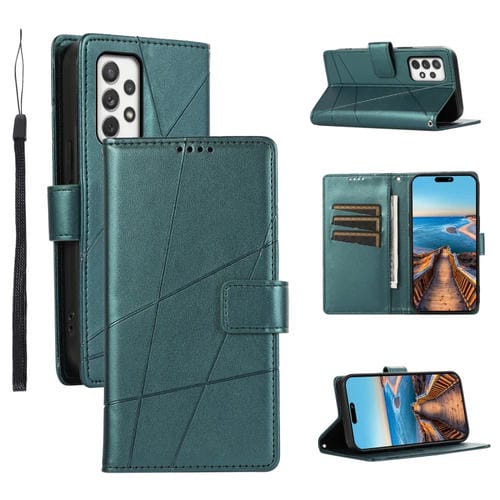 Funda para Teléfono Samsung Galaxy A72 5G Pu con Línea en Relieve y Textura de Cuero Genuino (Verde)