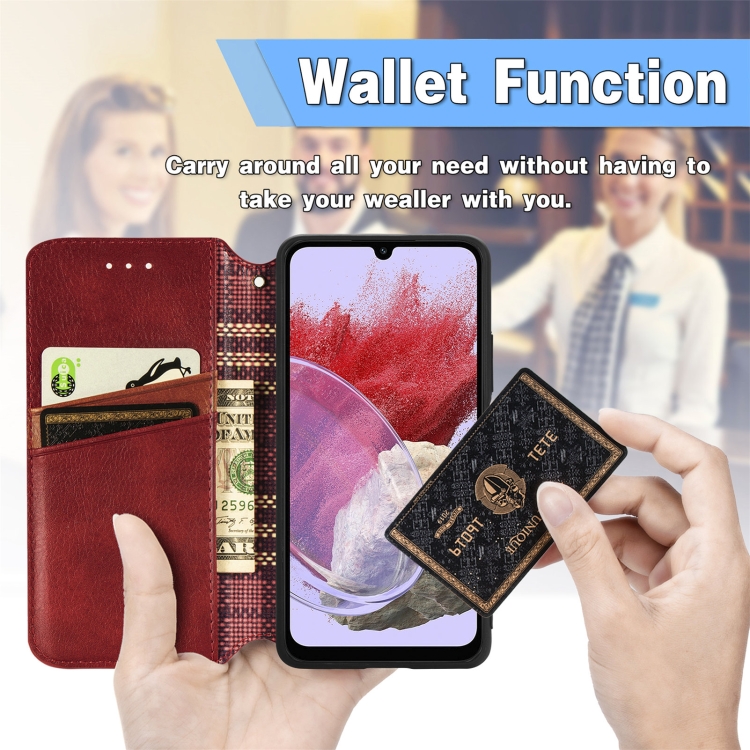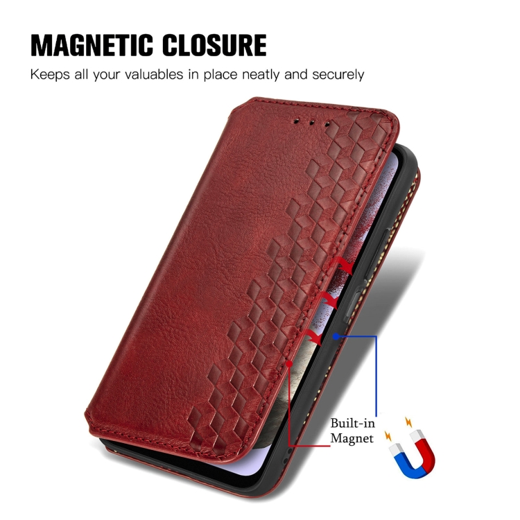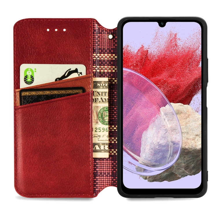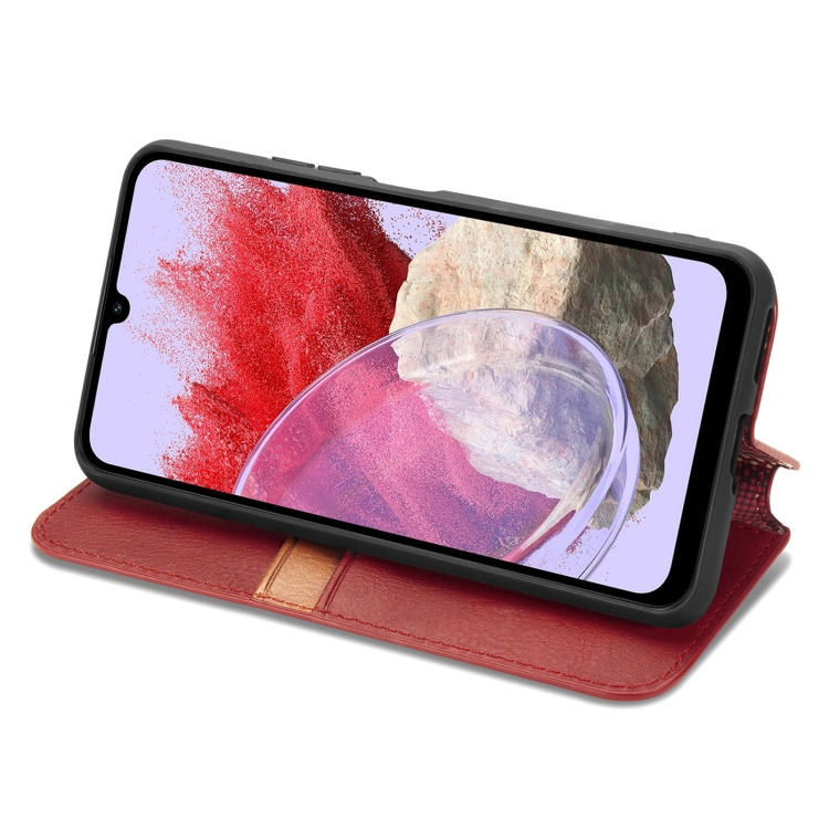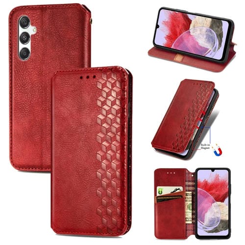 Funda para Teléfono Samsung Galaxy M34 5G Cuero Magnético Prensado Rejilla Cúbica (Rojo)