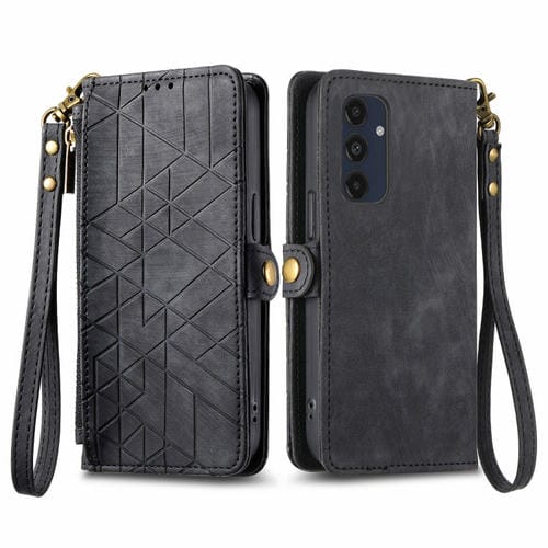 Estuche para Teléfono Samsung Galaxy M55 Cuero con Hebilla Lateral y Billetera con Cremallera Geométrica (Negro)