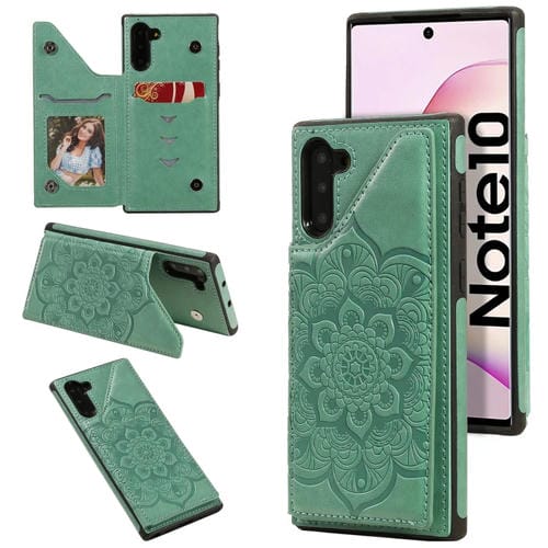 Estuche protector Samsung Galaxy Note10 Patrón Flor Grabado En Relieve a Prueba de Golpes con Soporte y Ranuras para Tarjetas (Verde)