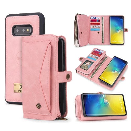 Funda de Cuero Samsung Galaxy S10E con Billetera y Cremallera Multifuncional (Rosa)
