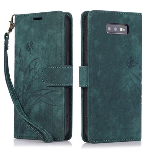Funda para Teléfono Samsung Galaxy S10E Cuero Relieve Mariposa Orquídea (Verde)