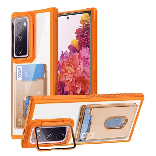 Estuche para Teléfono Samsung Galaxy S20 FE TPU Híbrido Acrílico con Soporte y Bolsa de Tarjeta (Naranja)