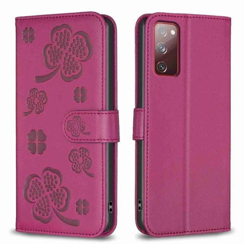 Funda para Teléfono Samsung Galaxy S20 FE Cuero Relieve Cuatro Hojas (Rojo Rosa)