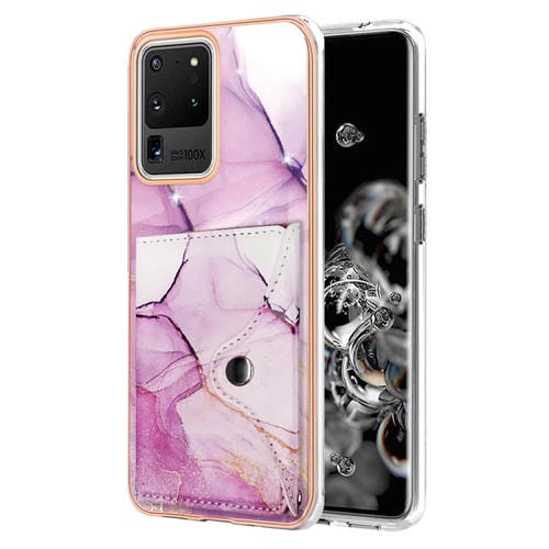 Estuche para Teléfono Samsung Galaxy S20 Ultra con Ranura para Tarjeta Imd Patrón de Mármol (Oro Rosa Púrpura)