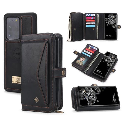 Funda de Cuero Samsung Galaxy S20 Ultra con Billetera y Cremallera Multifuncional (Negro)