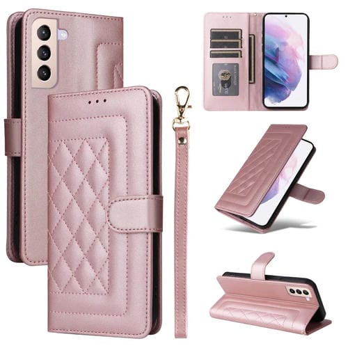 Estuche para Teléfono Samsung Galaxy S21 + 5G con Tapa de Cuero y Entramado de Diamantes (Oro Rosa)