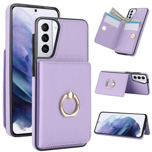 Estuche para Teléfono Samsung Galaxy S21 5G Rfid Tarjeta Antirrobo con Soporte para Anillo (Púrpura)