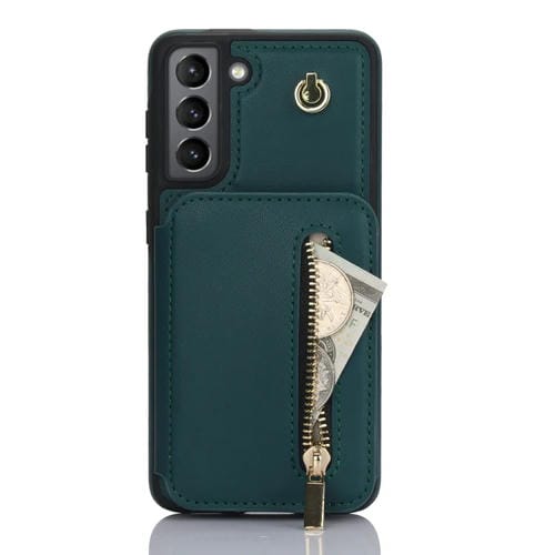 Estuche para Teléfono Samsung Galaxy S21 5G Ym006 con Bolsa para Tarjetas y Cremallera con Cordón Doble (Verde)