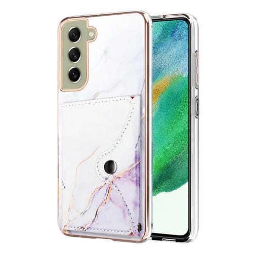 Estuche para Teléfono Samsung Galaxy S21 FE 5G con Ranura para Tarjeta Imd y Patrón de Mármol (Blanco y Morado)