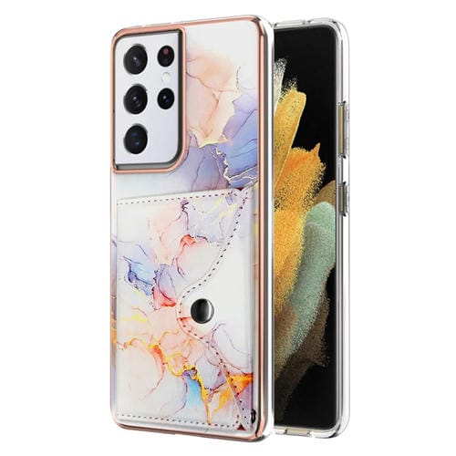 Estuche para Teléfono Samsung Galaxy S21 Ultra 5G con Ranura para Tarjeta Imd Patrón Mármol (Blanco)