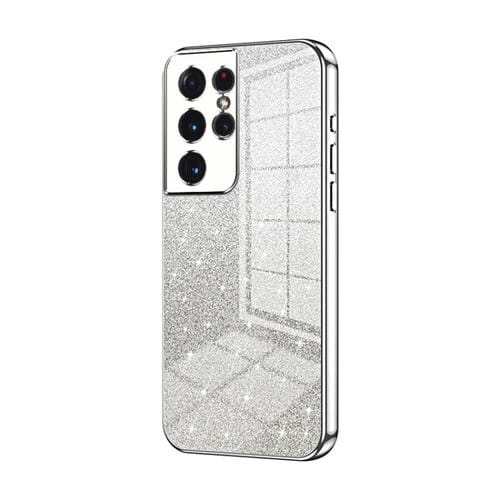 Estuche para Teléfono Samsung Galaxy S21 Ultra 5G Galvanizado con Polvo de Brillo Degradado (Plateado)
