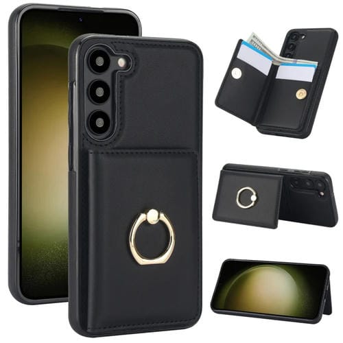 Estuche para teléfono Samsung Galaxy S23 5G Rfid tarjeta antirrobo con soporte para anillo (Negro)