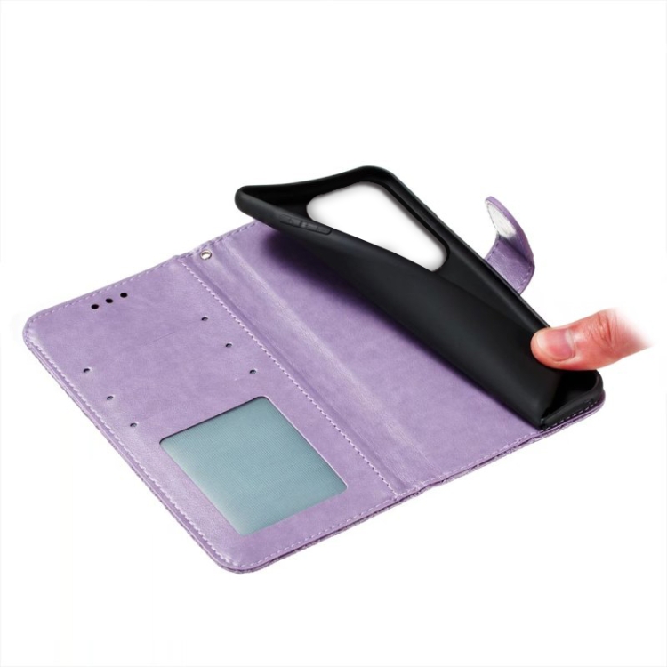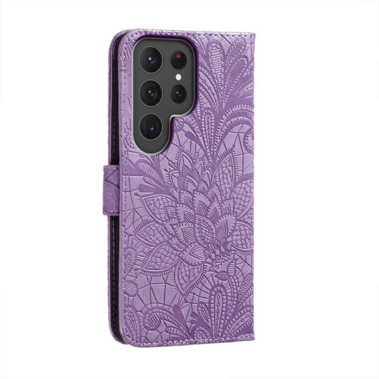 Para Samsung Galaxy S23 Ultra 5G Flor de encaje en relieve Flip Funda de cuero para teléfono (Púrpura)
