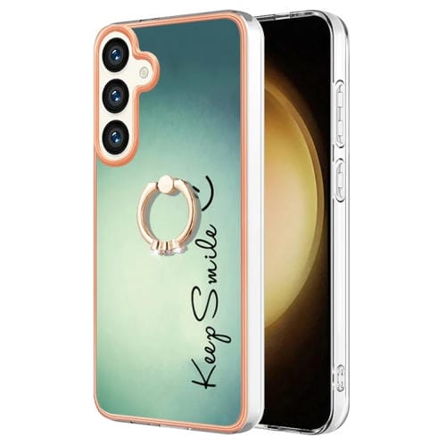 Estuche para Teléfono Samsung Galaxy S24 5G Imd Doble Cara con Galvanoplastia y Soporte para Anillo (Sonrisa)