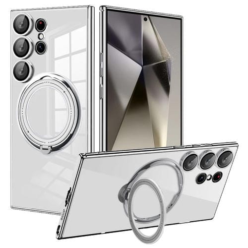 Estuche para teléfono Samsung Galaxy S24 Ultra Galvanoplastia Magsafe Soporte de Rotación 360 Grados (Plata)