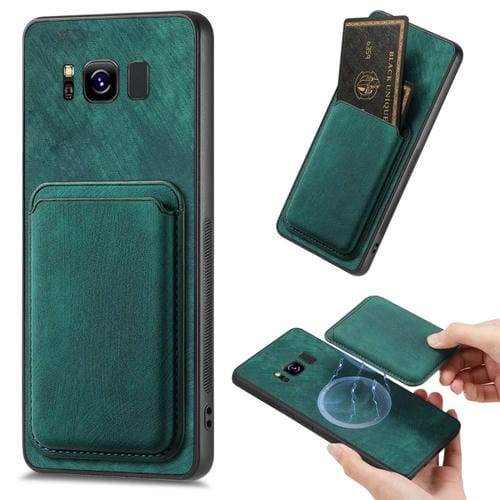 Funda de Teléfono Samsung Galaxy S8 Magnética con Bolso de Tarjeta de Cuero Retro (Verde)