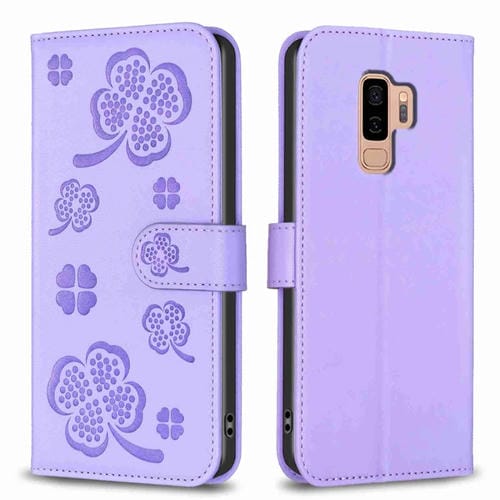 Funda para Samsung Galaxy S9 con Relieve de Cuatro Hojas de Cuero (Púrpura)