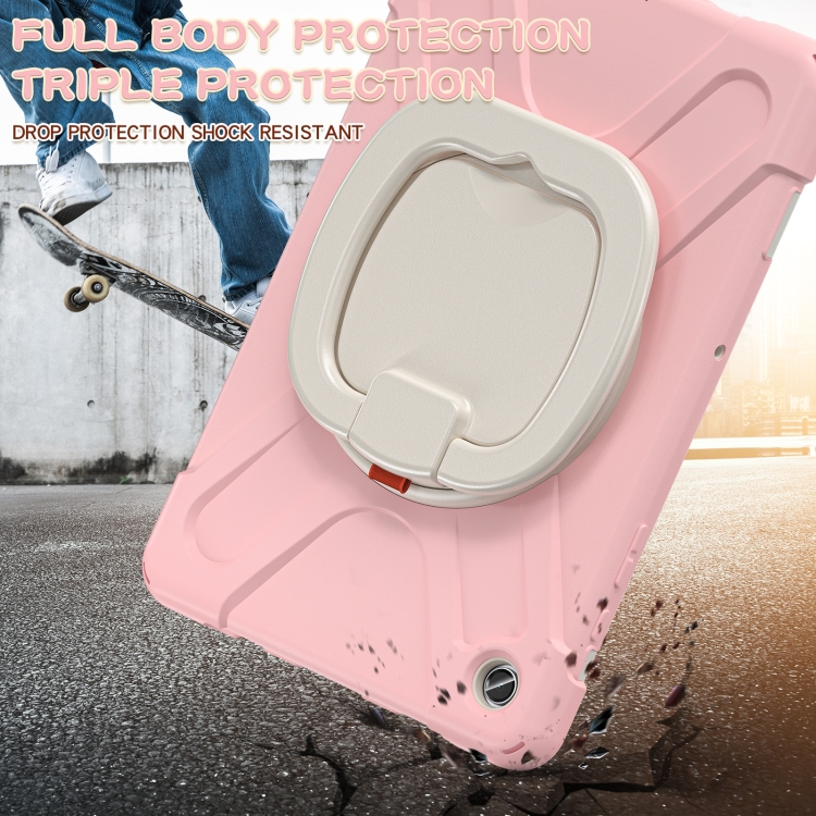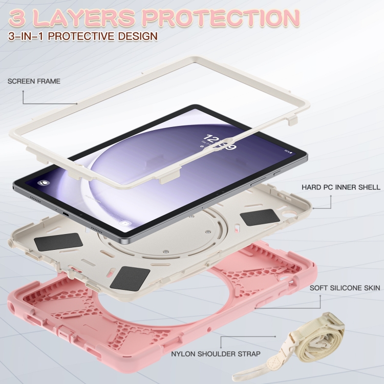 Funda híbrida de silicona para Samsung Galaxy Tab A9 con soporte y correa para el hombro (Rosa)