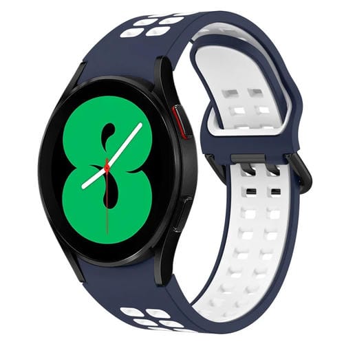Banda de Reloj para Samsung Galaxy Watch 4 40mm silicona transpirable dos colores (Azul Medianoche + Blanco)