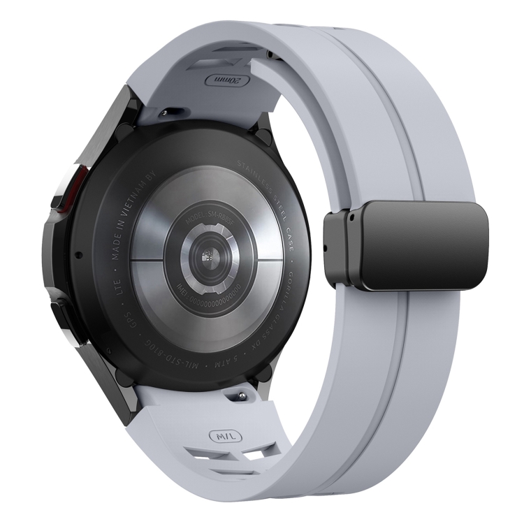 Correa de Reloj Silicona para Samsung Galaxy Watch 4 Classic 42/46mm con Hebilla Negra Plegable Magnética (Gris Claro)