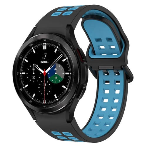 Banda de Reloj de Silicona para Samsung Galaxy Watch 4 Classic 42mm Transpirable (Negro + Azul)