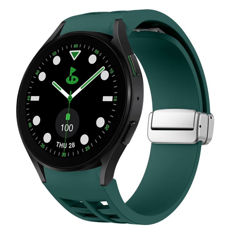 Correa de Silicona para Samsung Galaxy Watch 5 Golf Edition Richard con Hebilla Plateada Plegable Magnética (Verde Oscuro)
