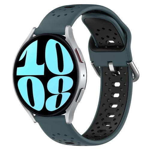 Banda de Reloj de Silicona para Samsung Galaxy Watch 6 40mm 20mm Dos Colores Transpirable (Verde Oliva + Negro)