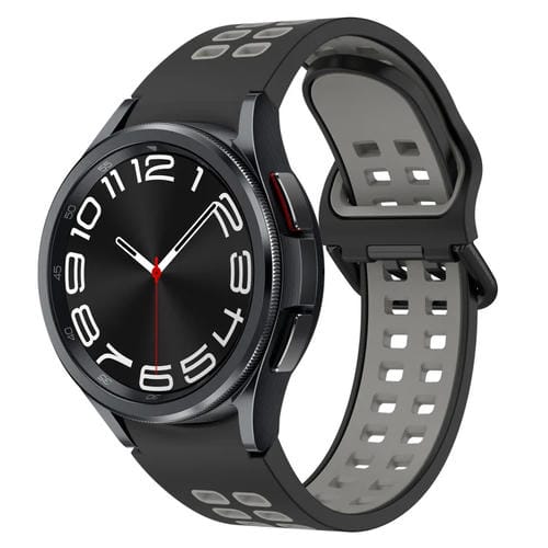 Banda de Reloj de Silicona para Samsung Galaxy Watch 6 Classic 43mm Transpirable (Negro + Gris)