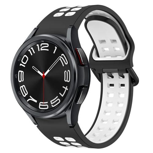 Banda de Reloj de Silicona para Samsung Galaxy Watch 6 Classic 43mm Transpirable (Negro + Blanco)