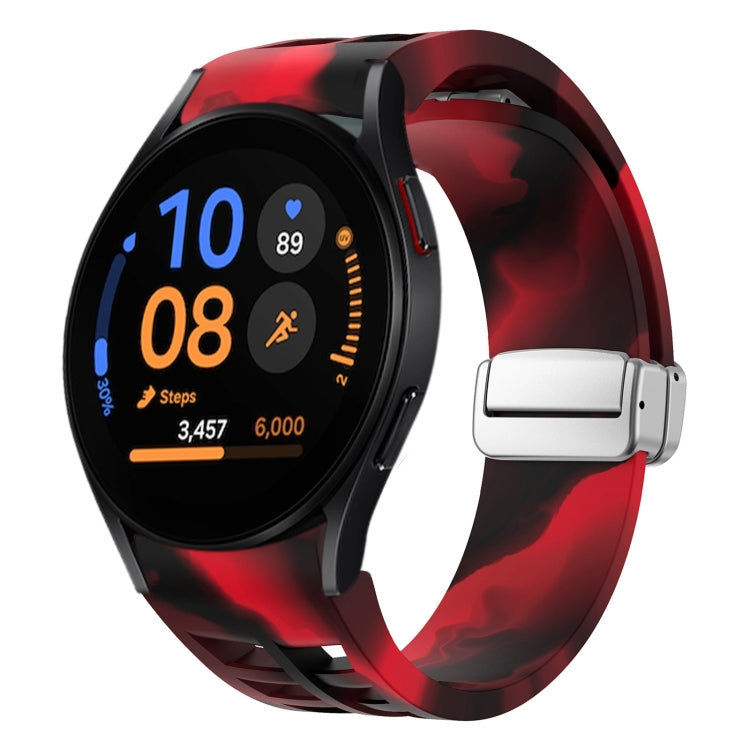 Correa de Silicona para Samsung Galaxy Watch FE 40mm Richard con Hebilla Plateada Plegable Magnética (Camuflaje Rojo Negro)