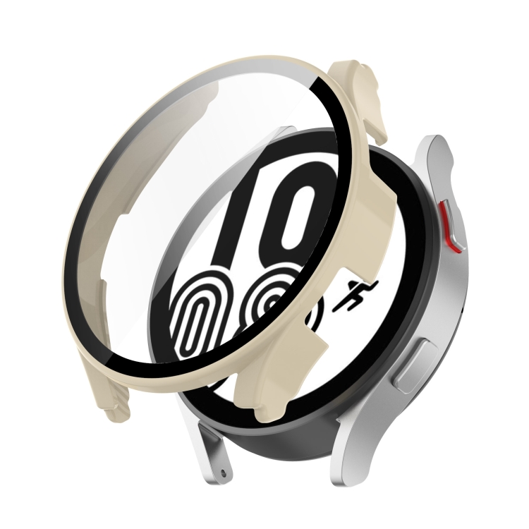 Protector Pantalla + Funda Samsung Galaxy Watch4 44mm Vidrio Templado (Marfil Blanco)