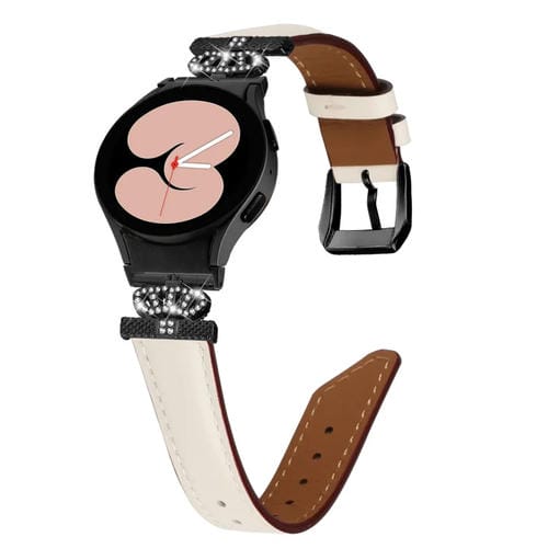 Correa de Cuero para Samsung Galaxy Watch6/6 Sarga en Forma de D con Corona Clásica (Albaricoque Negro)