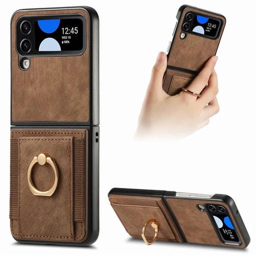 Funda para Teléfono Samsung Galaxy Z Flip 4 con Bolsa para Tarjeta y Anillo (Marrón)