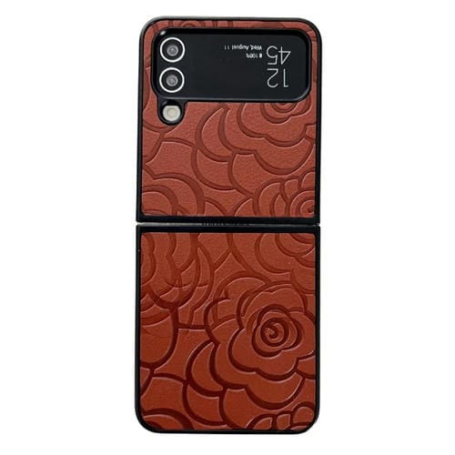 Funda Protectora Samsung Galaxy Z Flip4 con Patrón de Flores de Impresión (Marrón)