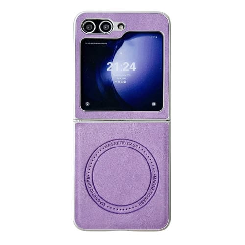 Funda para Teléfono Samsung Galaxy Z Flip5 Skin Feel Textura de Cuero Magsafe Pintura Nacarada a Prueba de Golpes (Púrpura)