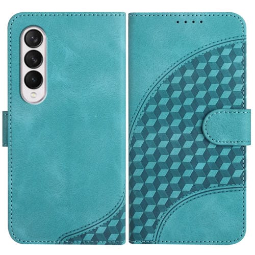 Funda para Samsung Galaxy Z Fold3 5G Yx0060 Cuero con Relieve y Cabeza de Elefante con Cordón (Azul Claro)