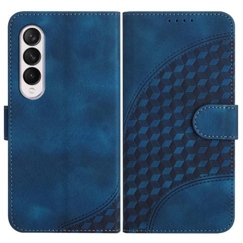 Funda para Samsung Galaxy Z Fold3 5G Yx0060 de Cuero con Relieve Cabeza de Elefante y Cordón (Azul Real)