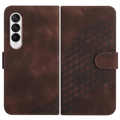 Funda de Cuero Samsung Galaxy Z Fold3 5G Yx0060 con Relieve y Cabeza de Elefante con Cordón (Café)