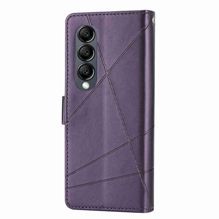 Funda para Teléfono Samsung Galaxy Z Fold4 PU con Línea En Relieve y Textura de Cuero Genuino (Púrpura)