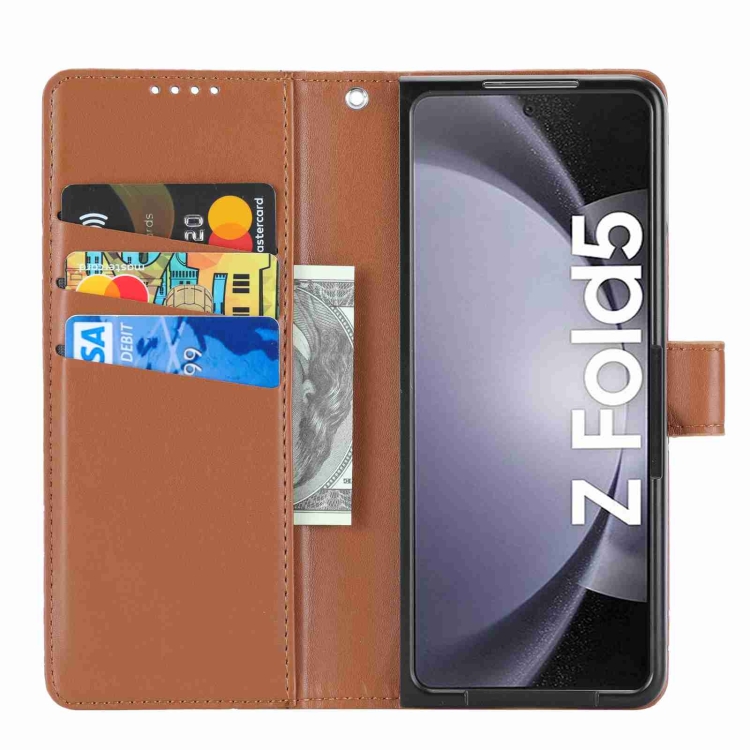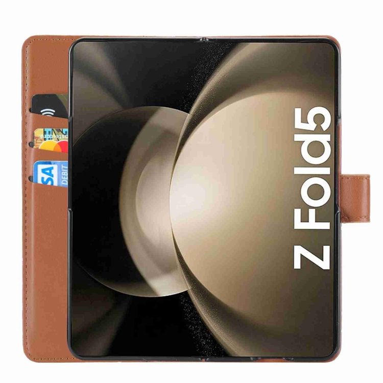 Funda para Teléfono Samsung Galaxy Z Fold5 PU con Línea en Relieve y Textura de Cuero Genuino (Marrón)