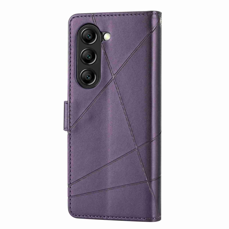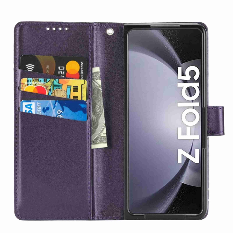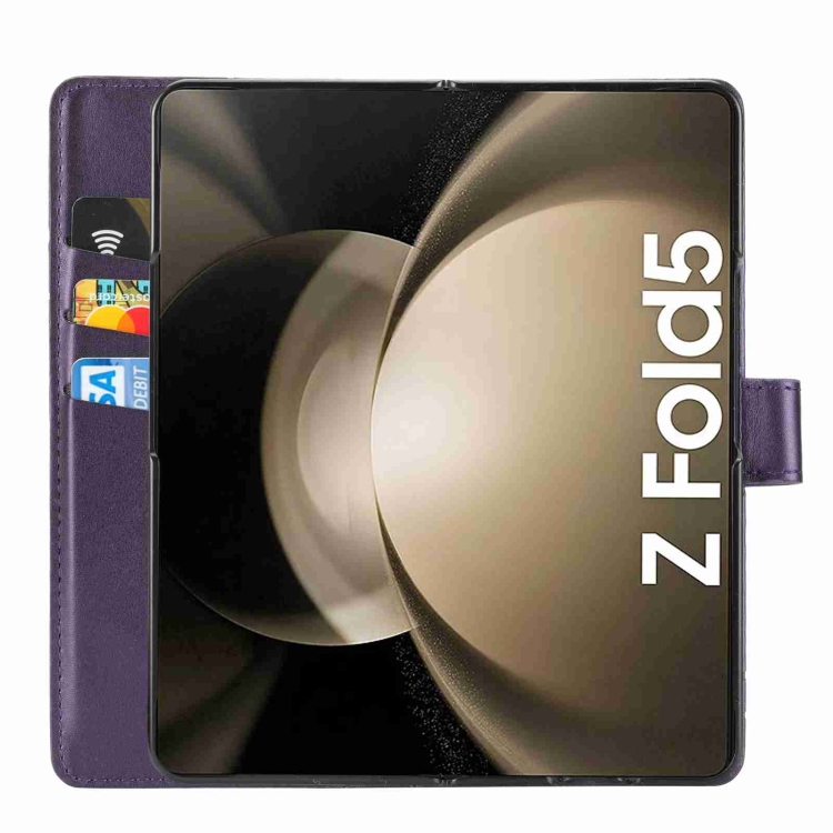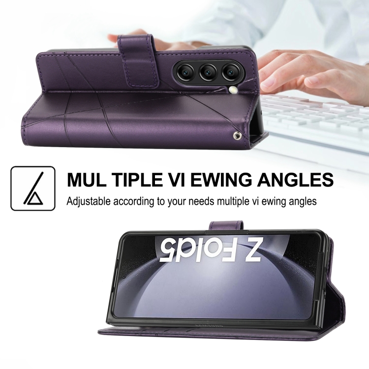 Funda para Teléfono Samsung Galaxy Z Fold5 PU con Línea en Relieve y Textura de Cuero Genuino (Púrpura)