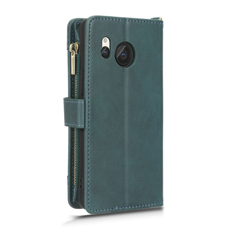 Funda de Cuero para Sharp Aquos R8 con Textura Litchi y Cremallera (Verde)