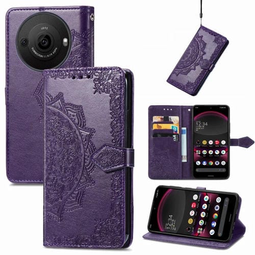 Estuche para Sharp Aquos R8 Pro Mandala Flower de Cuero en Relieve (Púrpura)