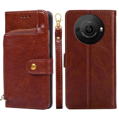 Funda de Cuero con Cremallera para Sharp Aquos R8 Pro Sh-51D (Marrón)