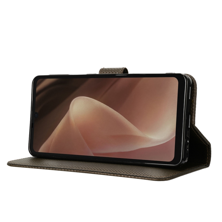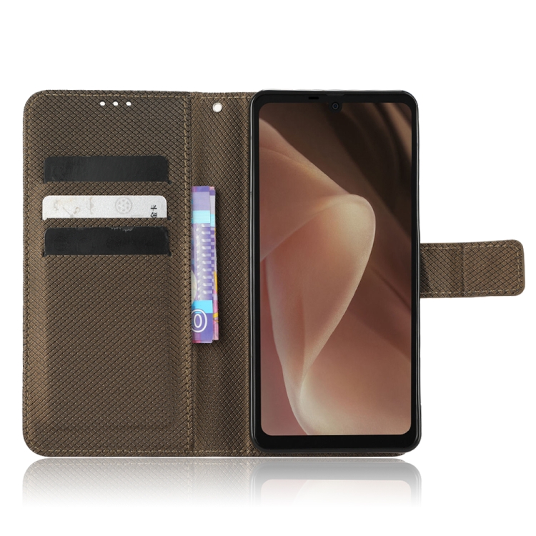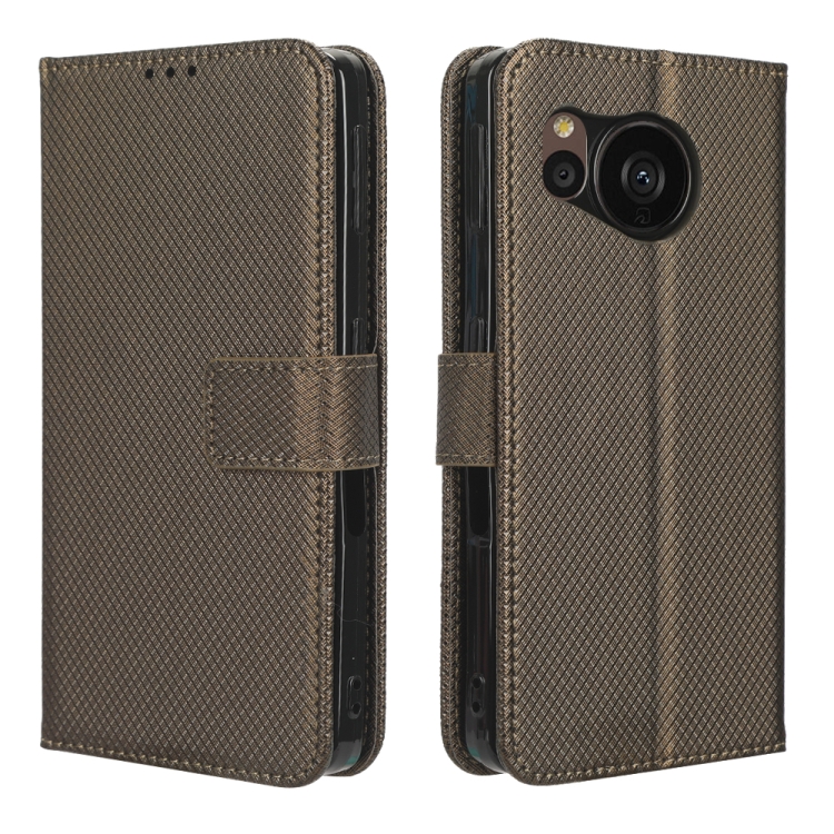 Funda para Sharp Aquos Sense7 Plus de Cuero con Textura de Diamante (Marrón)