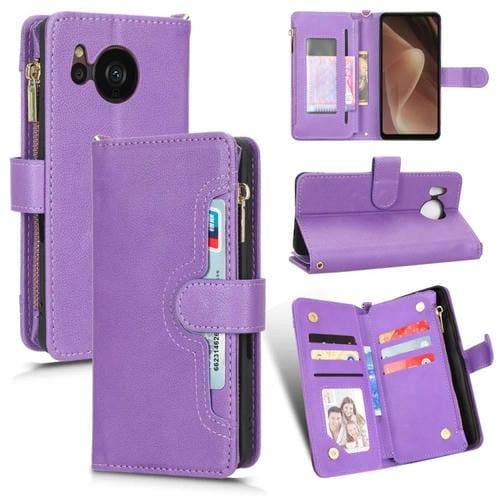 Funda de Cuero para Sharp Aquos Sense7 Plus con Textura Litchi y Cremallera (Púrpura)