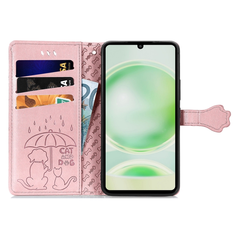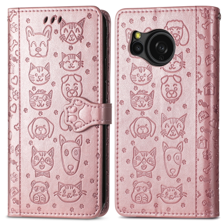 Funda para Sharp Aquos Sense8 de Cuero con Relieve Perros y Gatos (Oro Rosa)