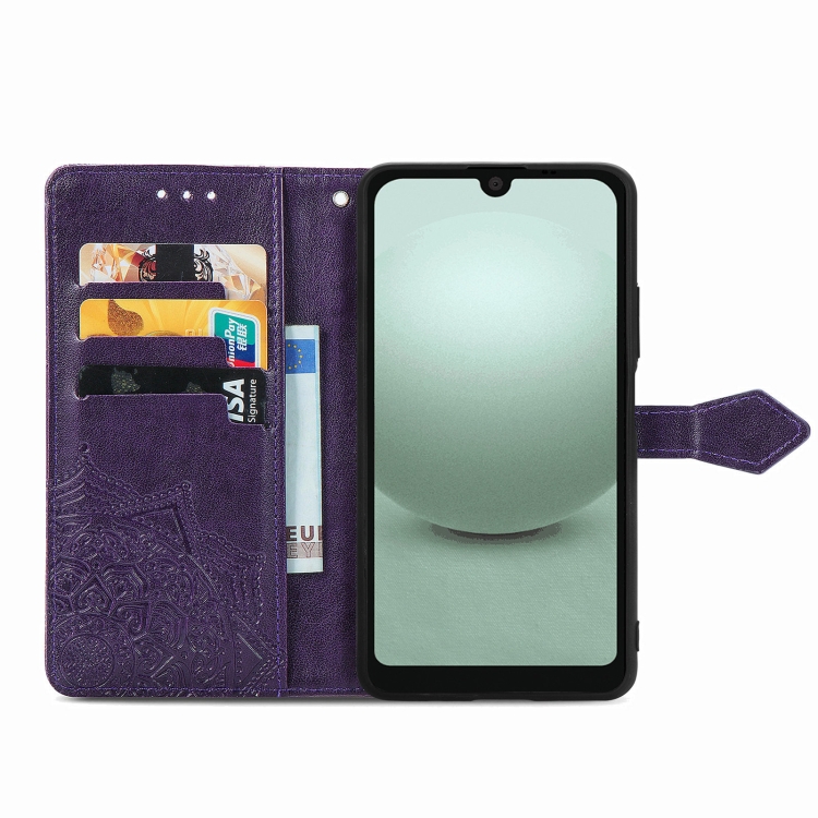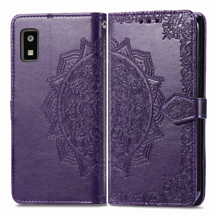 Funda de Cuero En Relieve Mandala Flower para Sharp Aquos Wish 3 (Púrpura)
