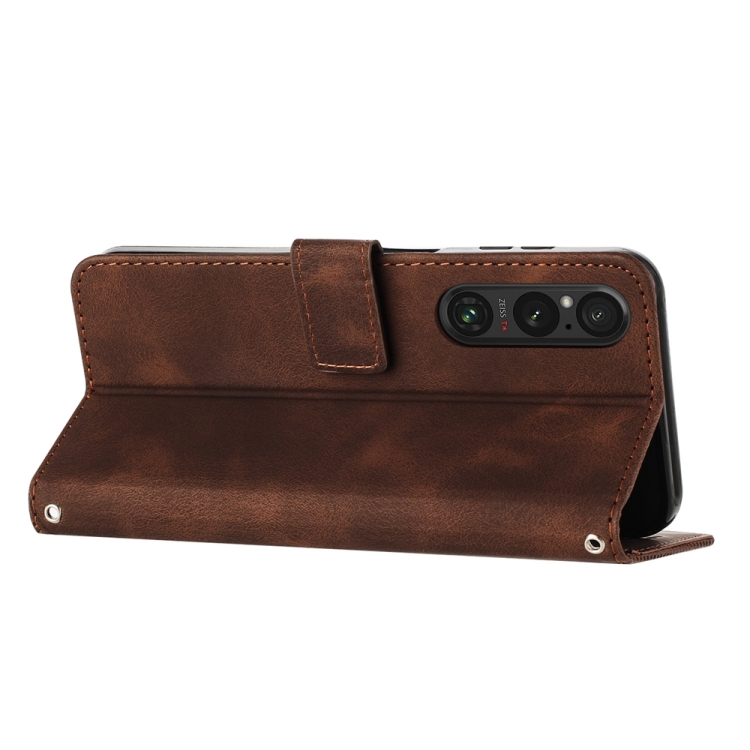 Funda de Cuero para Sony Xperia 1 V (2023) con Cordón (Marrón) Dream Triangle